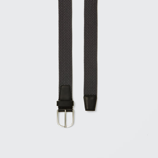 Woven Elasticated Leather Belt Black 35mm